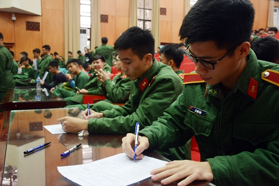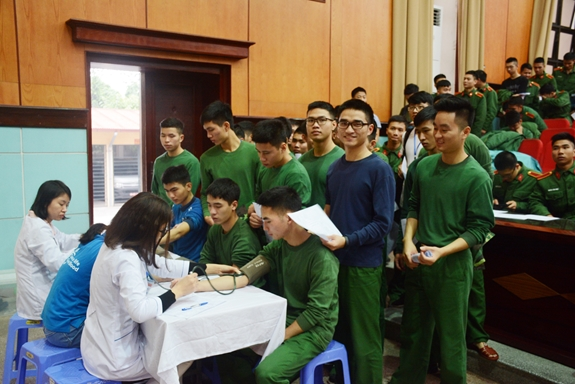 Học viên kiểm tra điều kiện sức khỏe trước khi hiến máu