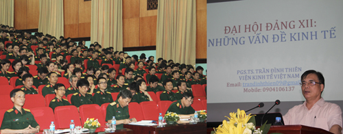 Trong chương trình học tập, các cán bộ, đảng viên đã được nghe giới thiệu những nội dung cơ bản, những điểm mới trong Nghị quyết Đại hội XII của Đảng thông qua 03 chuyên đề: Những nội dung cơ bản của Báo cáo chính trị tại Đại hội XII của Đảng; Báo cáo đánh giá kết quả thực hiện nhiệm vụ phát triển kinh tế – xã hội 5 năm 2011 – 2015 và phương hướng, nhiệm vụ phát triển kinh tế xã hội 5 năm 2016 – 2020; Báo cáo tổng kết thực hiện Nghị quyết Trung ương 4, khóa XI “Một số vấn đề cấp bách về xây dựng Đảng hiện nay”. Mặc dù thời gian ngắn, nội dung nhiều, song các báo cáo viên lên lớp đã lựa chọn những vấn đề trọng tâm, những nội dung mới, sát với tình hình nhiệm vụ của Học viện để giới thiệu, quán triệt. Đặc biệt, chuyên đề do chuyên gia kinh tế PGS. TS Trần Đình Thiên – Viện trưởng Viện Kinh tế giới thiệu, đã cung cấp, bổ sung cho các cán bộ, đảng viên Học viện nhiều nội dung, thông tin bổ ích về tình hình phát triển kinh tế của đất nước ta trong những năm qua và định hướng trong những năm tiếp theo.