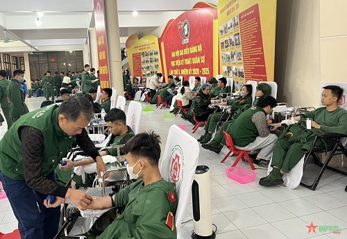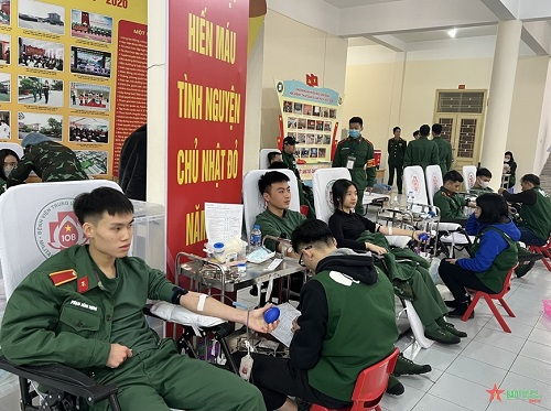 Tại Ngày hội hiến máu tình nguyện Chủ nhật đỏ lần thứ 16, Học viện KTQS có gần 800 người đăng ký tham gia hiến máu, gồm lực lượng trẻ của Học viện, cán bộ, giáo viên, nhân viên và người thân.