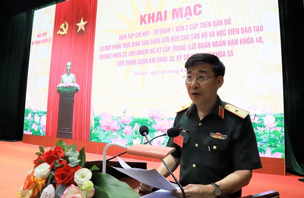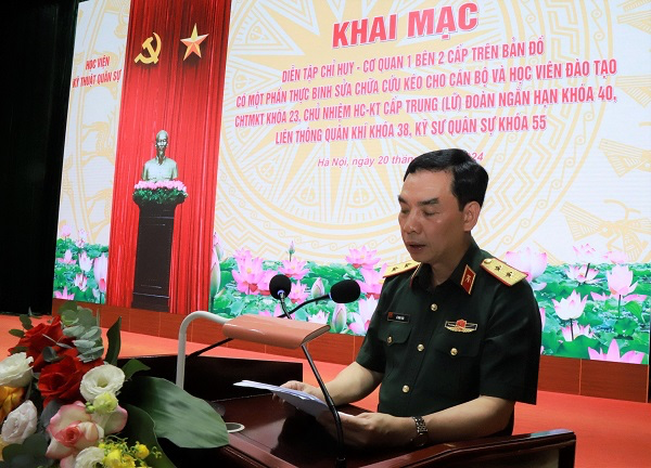 Sáng 20/6/2024, tại Hội trường S5, Học viện KTQS tổ chức Khai mạc Diễn tập chỉ huy – cơ quan 1 bên, 2 cấp trên bản đồ có một phần thực binh sửa chữa, cứu kéo cho cán bộ và học viên đào tạo Chỉ huy tham mưu kỹ thuật Khóa 23, Chủ nhiệm Hậu cần – Kỹ thuật cấp trung (lữ) đoàn ngắn hạn Khóa 40, Liên thông Quân khí Khóa 38, Kỹ sư quân sự Khóa 55 của Học viện KTQS (Diễn tập H24B). Trung tướng Lê Minh Thái – Giám đốc Học viện, Trưởng ban Chỉ đạo Diễn tập chủ trì buổi khai mạc.