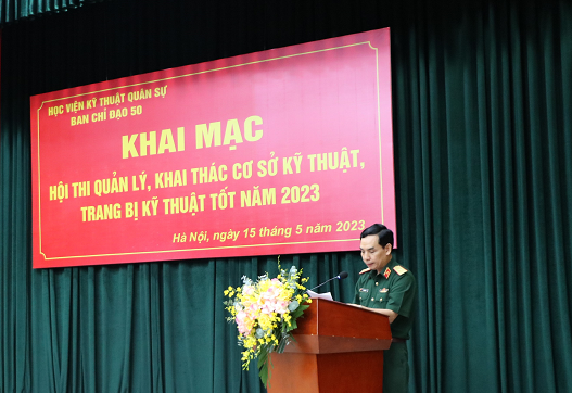 Thực hiện Kế hoạch Công tác Kỹ thuật năm 2023, ngày 15/5, Học viện KTQS đã khai mạc Hội thi Quản lý, Khai thác cơ sở kỹ thuật (CSKT), trang bị kỹ thuật (TBKT) tốt năm 2023. Tham dự buổi khai mạc có Thiếu tướng Lê Minh Thái – Giám đốc Học viện; các đồng chí trong Ban Chỉ đạo Cuộc vận động (CVĐ) 50, Ban Chấm thi và Tiểu ban Chấm thi; đại diện chỉ huy các đầu mối trực thuộc các khoa chuyên ngành trong Học viện, chỉ huy các bộ môn và tương đương, các đồng chí là nhân viên kỹ thuật (NVKT) trực tiếp quản lý CSKT, lái xe ô tô quân sự và phụ trách xe ô tô tham gia thi.