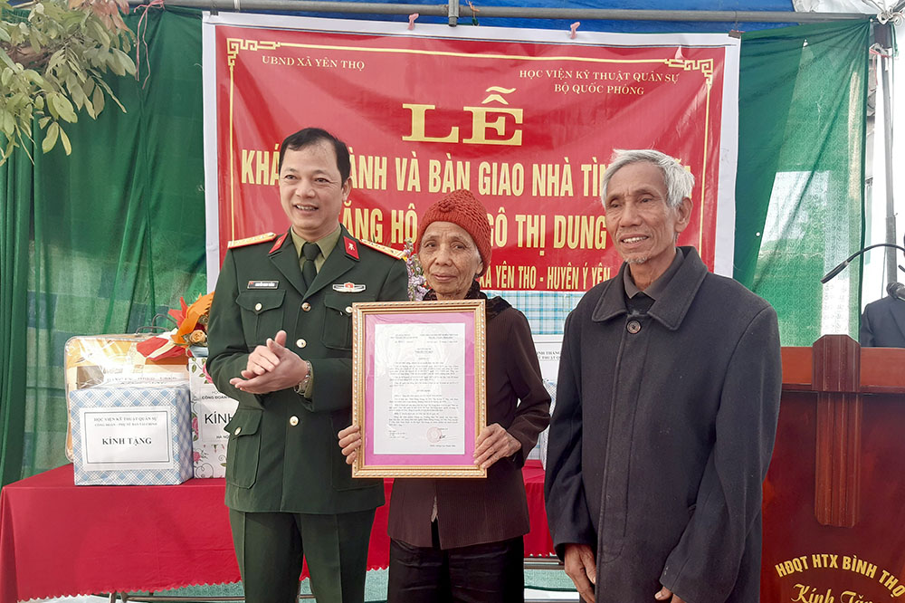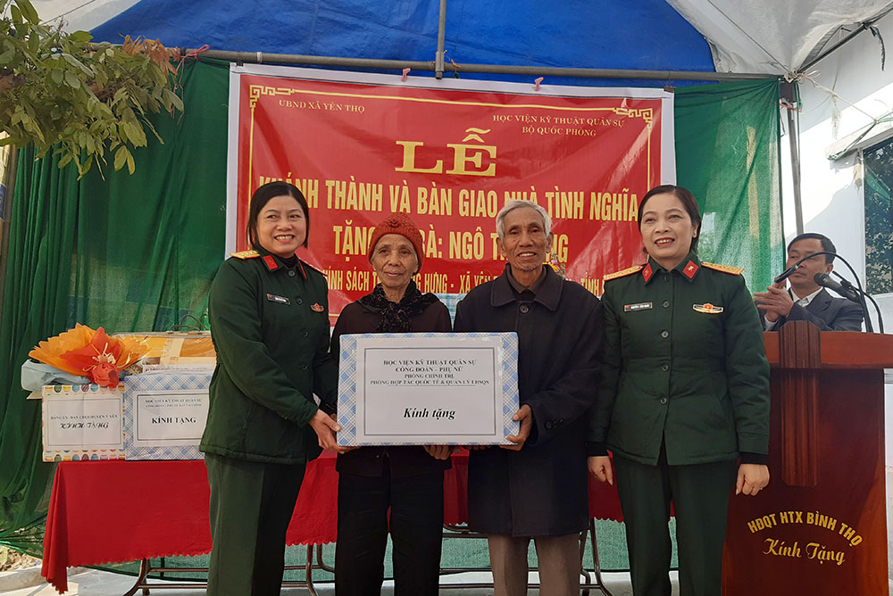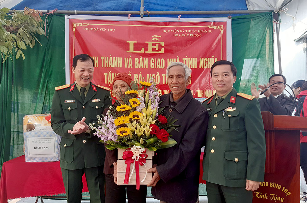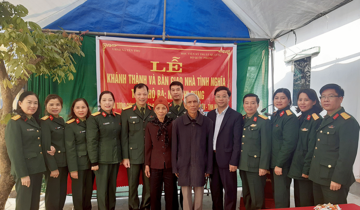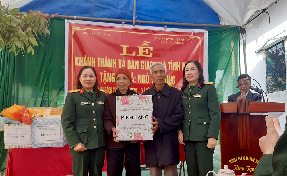 Hướng tới kỷ niệm 55 năm Ngày Truyền thống Học viện KTQS (28/10/1966-28/10/2021), sáng 14/01/2021, Học viện đã phối hợp với Đảng ủy, HĐND, UBND, UBMTTQ xã Yên Thọ; Huyện ủy, HĐND và Ban Chỉ huy Quân sự huyện Ý Yên, tỉnh Nam Định tổ chức Lễ khánh thành và bàn giao nhà tình nghĩa năm 2020 cho gia đình bà Ngô Thị Dung (72 tuổi) là thanh niên xung phong, thương binh trong kháng chiến chống Mỹ có tỷ lệ thương tật 42%.