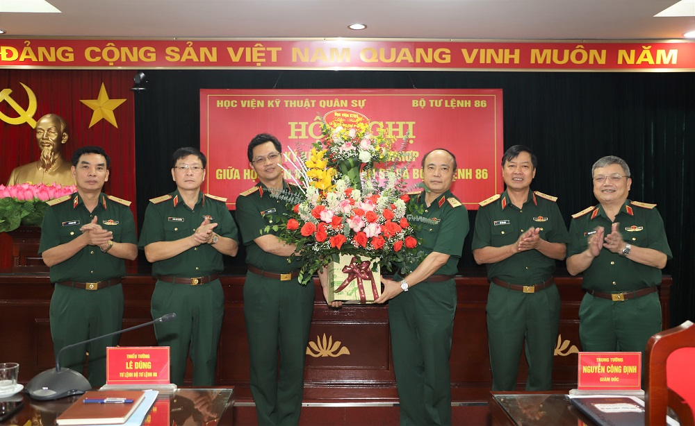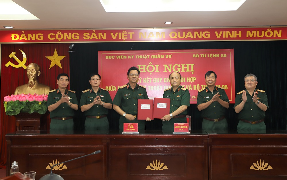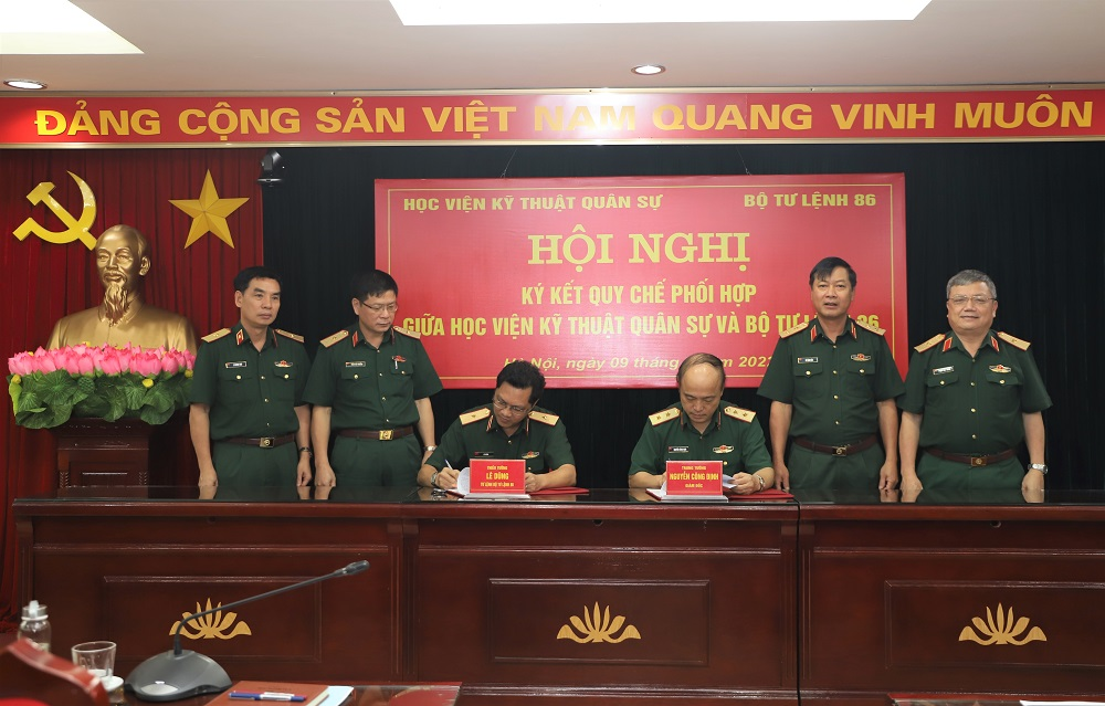 Ngày 09/9/2022, tại Hà Nội, Học viện KTQS và Bộ Tư lệnh 86 đã phối hợp tổ chức Hội nghị ký kết Quy chế phối hợp trong công tác đào tạo, nghiên cứu khoa học, bảo đảm cơ sở vật chất, trang thiết bị công nghệ thông tin, xây dựng Chính phủ điện tử và chuyển đổi số trong Quân đội; đồng thời ký kết Kế hoạch hợp tác giai đoạn 2022 – 2023. Trung tướng Nguyễn Công Định – Giám đốc Học viện KTQS và Thiếu tướng Lê Dũng – Tư lệnh Bộ Tư lệnh 86 đồng chủ trì Hội nghị.