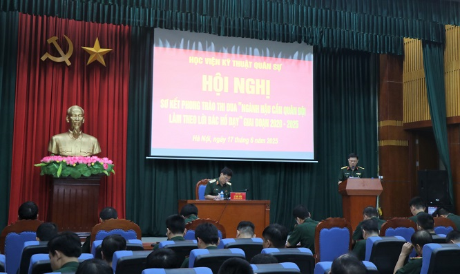 Chiều 17/6, Học viện KTQS đã tổ chức Hội nghị sơ kết Phong trào thi đua (PTTĐ) “Ngành Hậu cần Quân đội làm theo lời Bác Hồ dạy” giai đoạn 2020-2025. Thiếu tướng Lê Anh Tuấn – Phó Giám đốc Học viện chủ trì Hội nghị. Tham dự Hội nghị có đại diện chỉ huy các đầu mối trực thuộc Học viện.
