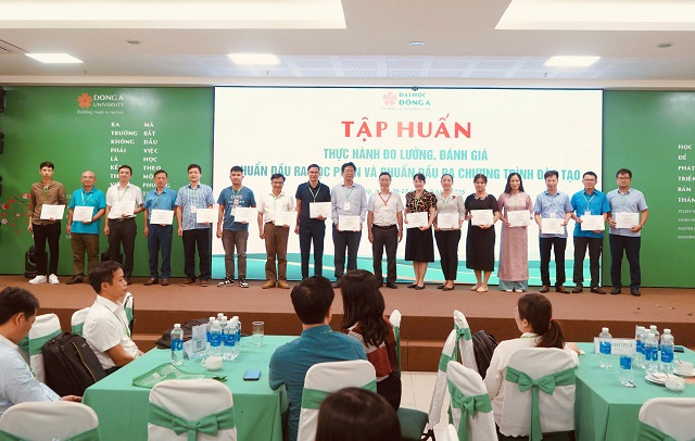 Học viên Lớp Tập huấn còn được hướng dẫn thực hành rà soát ma trận liên kết giữa chuẩn đầu ra CTĐT với chuẩn đầu ra các học phần và xác định học phần cốt lõi dùng để đo lường, đánh giá mức đạt chuẩn đầu ra CTĐT; thực hành đo lường, đánh giá mức độ người học đạt chuẩn đầu ra CTĐT từ báo cáo dữ liệu của các học phần cốt lõi. Kết thúc nội dung tập huấn, cán bộ, giảng viên của Học viện cũng được nghe PGS. TS, NGƯT Đinh Thành Việt chia sẻ kinh nghiệm thực tế và những nội dung đã triển khai tại Trường Đại học Đông Á.