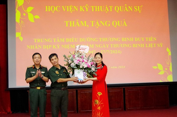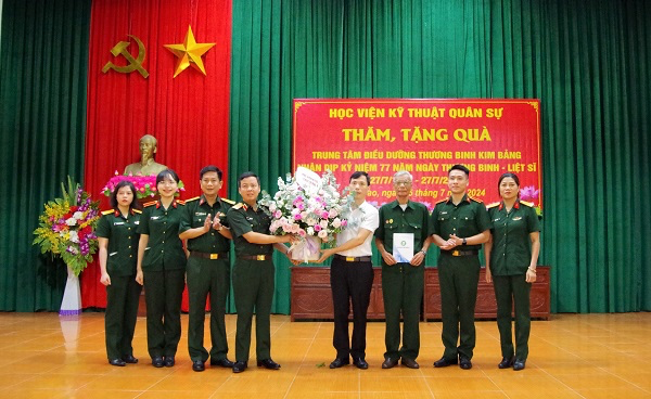 Nhằm hướng tới kỷ niệm 77 năm Ngày Thương binh, Liệt sĩ (27/7/1947- 27/7/2024), ngày 05 – 06/7/2024, Đoàn công tác của Học viện KTQS do Thiếu tướng Trần Văn Duy – Phó Chính ủy Học viện làm Trưởng đoàn đã tới thăm, động viên và tặng quà các thương binh, bệnh binh tại Trung tâm Điều dưỡng thương binh huyện Kim Bảng, Duy Tiên, tỉnh Hà Nam; huyện Nho Quan, tỉnh Ninh Bình; huyện Thuận Thành, tỉnh Bắc Ninh. Đây là hoạt động ý nghĩa, nhằm giáo dục truyền thống “Uống nước nhớ nguồn”, “Đền ơn đáp nghĩa”, bồi đắp tinh thần yêu nước, ý chí cách mạng, xác định rõ trách nhiệm của cán bộ, giảng viên, nhân viên, học viên, HSQ-CS đối với sự nghiệp xây dựng và bảo vệ Tổ quốc.