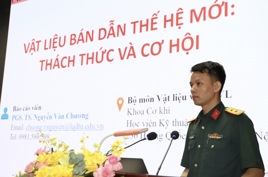 Trung tá PGS. TS Nguyễn Văn Chương – Khoa Cơ khí, Học viện KTQS báo cáo tại hội nghị