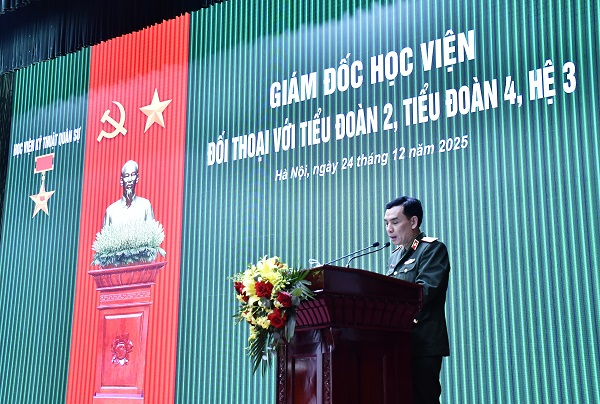Tối ngày 23, 24 và 25/12/2025, Học viện KTQS đã tổ chức các buổi đối thoại dân chủ giữa Thủ trưởng Học viện với cán bộ, nhân viên, học viên và hạ sĩ quan – binh sĩ (HSQ-BS) thuộc các tiểu đoàn, hệ quản lý học viên năm 2025.