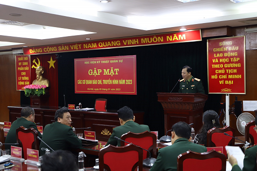 Phát biểu tại buổi gặp mặt, đại biểu các cơ quan báo chí bày tỏ ấn tượng trước sự quan tâm của Đảng ủy, Ban Giám đốc Học viện, chỉ huy các cơ quan, đơn vị, cũng như công tác lãnh đạo, chỉ đạo, tổ chức thực hiện một cách bài bản, có hiệu quả công tác tuyên truyền trên phương tiện thông tin đại chúng của Học viện trong thời gian qua. Đồng thời khẳng định, trong năm 2023 sẽ tiếp tục phối hợp, đẩy mạnh tuyên truyền về Học viện, trọng tâm là: Triển khai thực hiện Đề án Quy hoạch phát triển Học viện đến năm 2030, tầm nhìn 2045; Kế hoạch nâng hạng quốc tế của Học viện với danh nghĩa Đại học Kỹ thuật Lê Quý Đôn; thực hiện Biểu tổ chức biên chế mới của Học viện; đổi mới nội dung, chương trình, nâng cao chất lượng đào tạo theo phương châm “Chất lượng đào tạo của nhà trường là khả năng SSCĐ của đơn vị”; công tác tuyên truyền tuyển sinh và nâng cao chất lượng đào tạo giai đoạn 1 cho học viên sĩ quan cấp phân đội trình độ đại học; giới thiệu các sản phẩm KHCN tiêu biểu; hợp tác quốc tế trong đào tạo, NCKH; hoạt động của các Nhóm nghiên cứu mạnh; tuyên truyền về các sự kiện, hoạt động quan trọng của Học viện trong năm 2023…