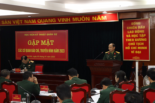 Chiều 05/01/2023, Học viện KTQS đã tổ chức Gặp mặt các cơ quan báo chí, truyền hình năm 2023, Thiếu tướng Nguyễn Minh Thắng – Phó Chính ủy Học viện chủ trì buổi gặp mặt. Tham dự Gặp mặt có các đồng chí đại biểu Phòng Thông tấn – Báo chí/Cục Tuyên huấn; lãnh đạo, chỉ huy, phóng viên các cơ quan báo chí, truyền hình trong và ngoài Quân đội: Trung tâm Phát thanh – Truyền hình Quân đội, Báo Quân đội nhân dân, Báo Tiền phong, Báo điện tử Dân trí, Tạp chí Quốc phòng toàn dân, Tạp chí Quân sự – Quốc phòng, Tạp chí Kỹ thuật và Trang bị, Cổng TTĐT Bộ Quốc phòng; đại diện lãnh đạo, chỉ huy các cơ quan, đơn vị đầu mối trực thuộc Học viện.