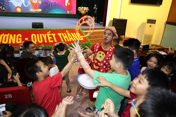 Sau chương trình tặng quà, tuyên dương các cháu học sinh giỏi tiêu biểu, đoàn xiếc nghệ thuật đã có những tiết mục đặc sắc và giao lưu với các cháu học sinh đem lại bầu không khí vui vẻ, hào hứng cho các cháu học sinh và khán giả.