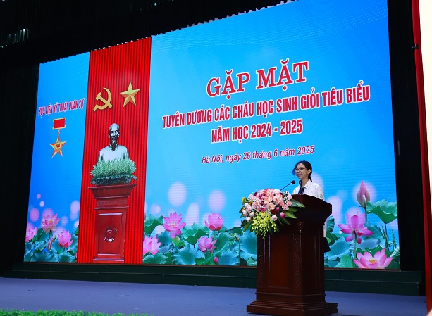 Đại diện các cháu học sinh xuất sắc, tiêu biểu phát biểu cảm nghĩ tại buổi gặp mặt