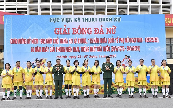 Sáng 7/3, Học viện KTQS tổ chức gặp mặt, tuyên dương điển hình tiên tiến Phụ nữ Học viện giai đoạn 2020 – 2025 và giao lưu thể dục thể thao Chào mừng kỷ niệm 1985 Khởi nghĩa Hai Bà Trưng (40 – 2025), 115 năm Ngày Quốc tế Phụ nữ (8/3/1910 – 8/3/2025), 50 năm Ngày Giải phóng miền Nam, thống nhất đất nước (30/4/1975 – 30/4/2025). Tới tham dự và chỉ đạo chương trình có Thiếu tướng Trần Văn Duy – Phó Chính ủy Học viện, Đại tá Trần Quang Huy – Phó Chủ nhiệm Chính trị, Thượng tá Nguyễn Thị Thanh – Phó Trưởng ban Phụ nữ Quân đội, đại biểu Ban Phụ nữ Quân đội, các đồng chí chỉ huy các cơ quan, đơn vị đầu mối trực thuộc Học viện và hơn 700 cán bộ, hội viên Hội Phụ nữ.