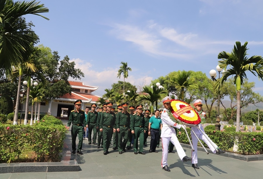Đoàn công tác đặt vòng hoa, dâng hương tưởng niệm các anh hùng liệt sĩ tại Nghĩa trang Liệt sĩ Him Lam, thành phố Điện Biên Phủ, tỉnh Điện Biên