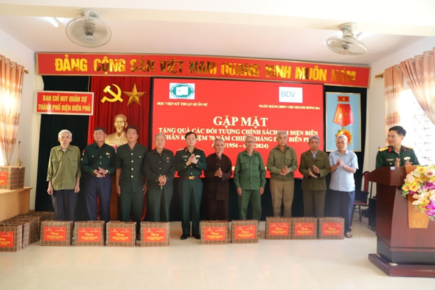 Nhân dịp này, Học viện KTQS và Ngân hàng BIDV chi nhánh Đống Đa (Hà Nội) dành tặng những món quà đến các đối tượng chính sách trên địa bàn thành phố Điện Biên Phủ và huyện Điện Biên. Những món quà tuy nhỏ về giá trị vật chất nhưng thể hiện tình cảm của cán bộ, giáo viên, nhân viên, hạ sĩ quan, chiến sĩ trong Học viện và cán bộ, nhân viên của Ngân hàng BIDV chi nhánh Đống Đa, đồng thời thể hiện đạo lý “Uống nước nhớ nguồn”, “Tương thân, tương ái” của dân tộc ta.