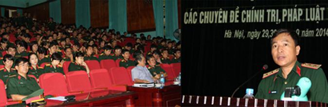 Thực hiện nội dung, chương trình, kế hoạch và hướng dẫn của TCCT về công tác giáo dục chính trị và phổ biến, giáo dục pháp luật trong quân đội, trong các ngày 29, 30/9 và 01, 02/10, Học viện tổ chức đợt 1 “Học tập các chuyên đề giáo dục chính trị, pháp luật năm 2014” cho 1674 cán bộ, giáo viên, nhân viên trong toàn Học viện. Đợt 1 chia thành 2 lớp, thời gian học mỗi lớp là 1,5 ngày.