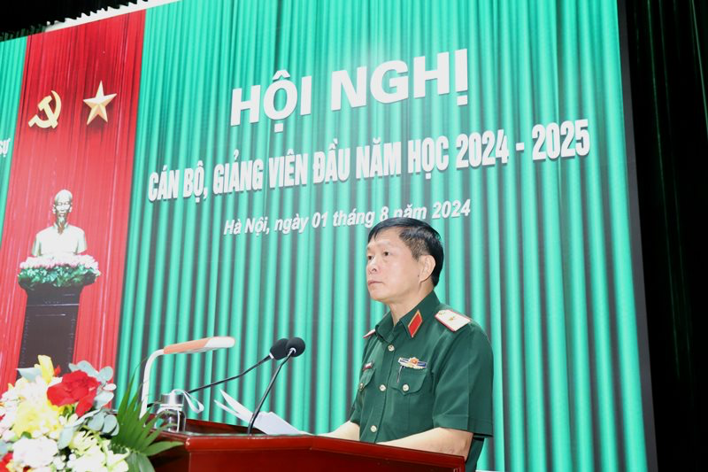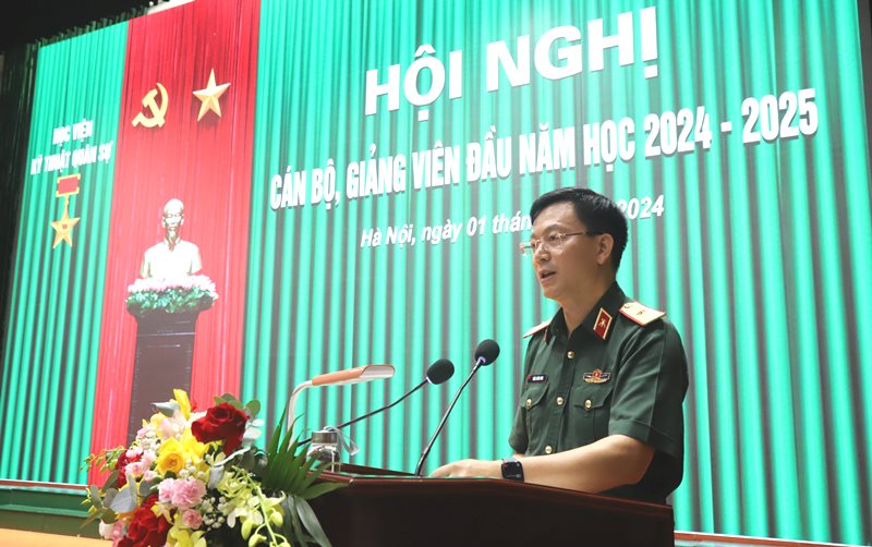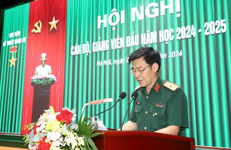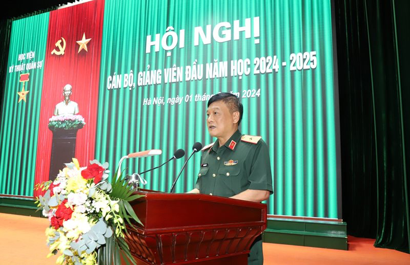 Tại Hội nghị, Thiếu tướng Trần Văn Thưởng – Chính ủy Học viện đã phổ biến Nghị quyết lãnh đạo của Đảng ủy Học viện, nhiệm vụ CTĐ, CTCT năm học 2024 – 2025 và quán triệt thực hiện “5 quyết tâm, 5 chủ động” theo chỉ đạo của cố Tổng Bí thư Nguyễn Phú Trọng tại Hội nghị Quân ủy Trung ương lần thứ X. Đồng chí Giám đốc Học viện đã thông báo tóm tắt kết luận của đồng chí Bộ trưởng Bộ Quốc phòng tại Hội nghị Quân chính toàn quân 6 tháng đầu năm 2024; quán triệt, triển khai thực hiện Chỉ thị nhiệm vụ và những nội dung công tác chính của Học viện trong năm học 2024 – 2025. Các đồng chí Phó Giám đốc Học viện trên lĩnh vực phụ trách đã triển khai các nhiệm vụ công tác đào tạo, khảo thí, tăng cường ứng dụng công nghệ thông tin; công tác khoa học quân sự, thông tin khoa học quân sự, Tạp chí KH&KT và hợp tác quốc tế; công tác quân sự – hành chính, hậu cần năm học 2024 – 2025. Đồng thời, Hội nghị cũng đã được nghe giới thiệu về Quy hoạch điều chỉnh tổng mặt bằng xây dựng doanh trại Khu A/Học viện Kỹ thuật quân sự mới được Bộ Quốc phòng phê duyệt.