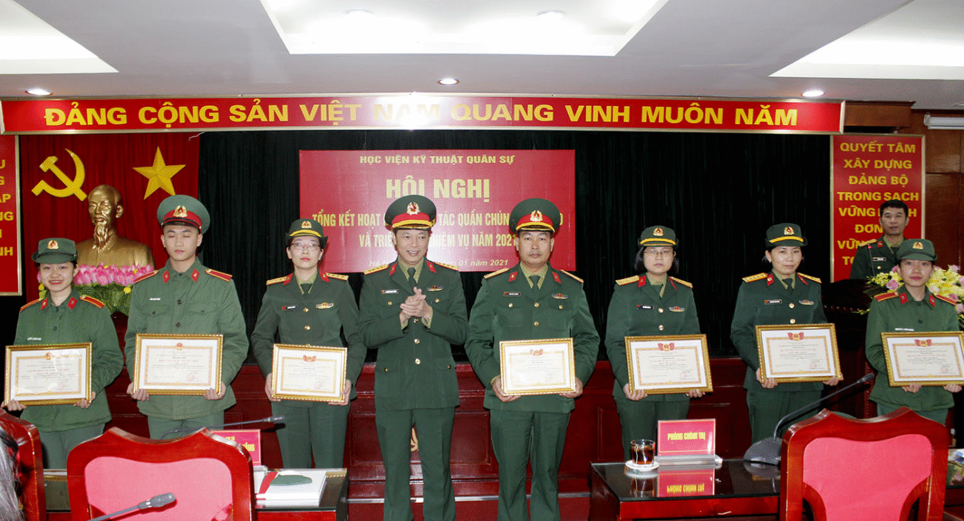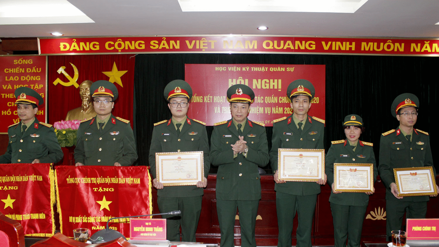 Được sự ủy quyền của Thủ trưởng cấp trên, đồng chí Phó Chính ủy Học viện đã trao Cờ thi đua, Bằng khen của Tổng cục Chính trị cho các đơn vị, cá nhân có thành tích xuất sắc trong hoạt động công tác quần chúng năm 2020. Hy vọng rằng, đây sẽ là phần thưởng tinh thần quý giá, là động lực để mỗi cán bộ, đoàn viên, hội viên phát huy tính tích cực, chủ động, sáng tạo, khắc phục khó khăn, hoàn thành tốt mọi nhiệm vụ được giao.