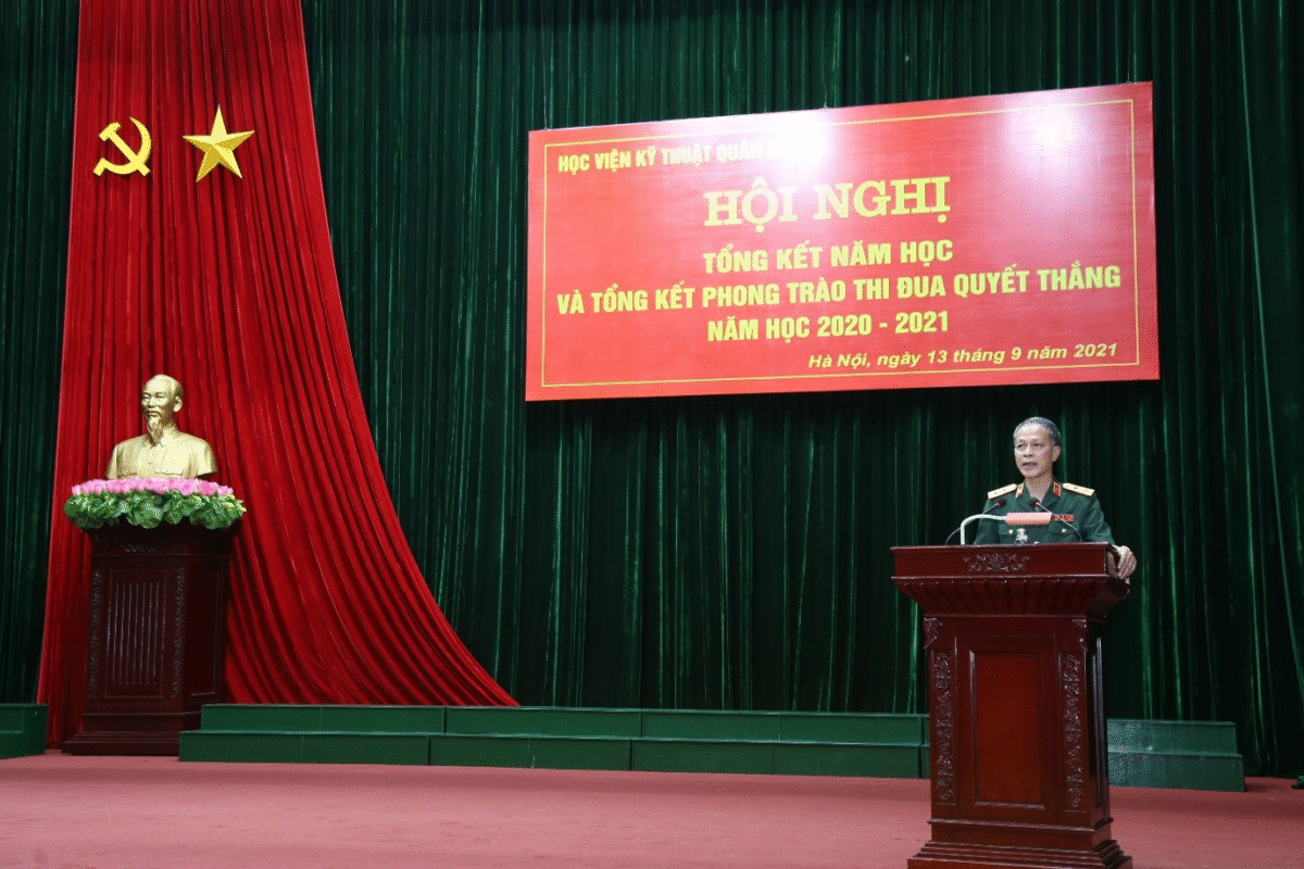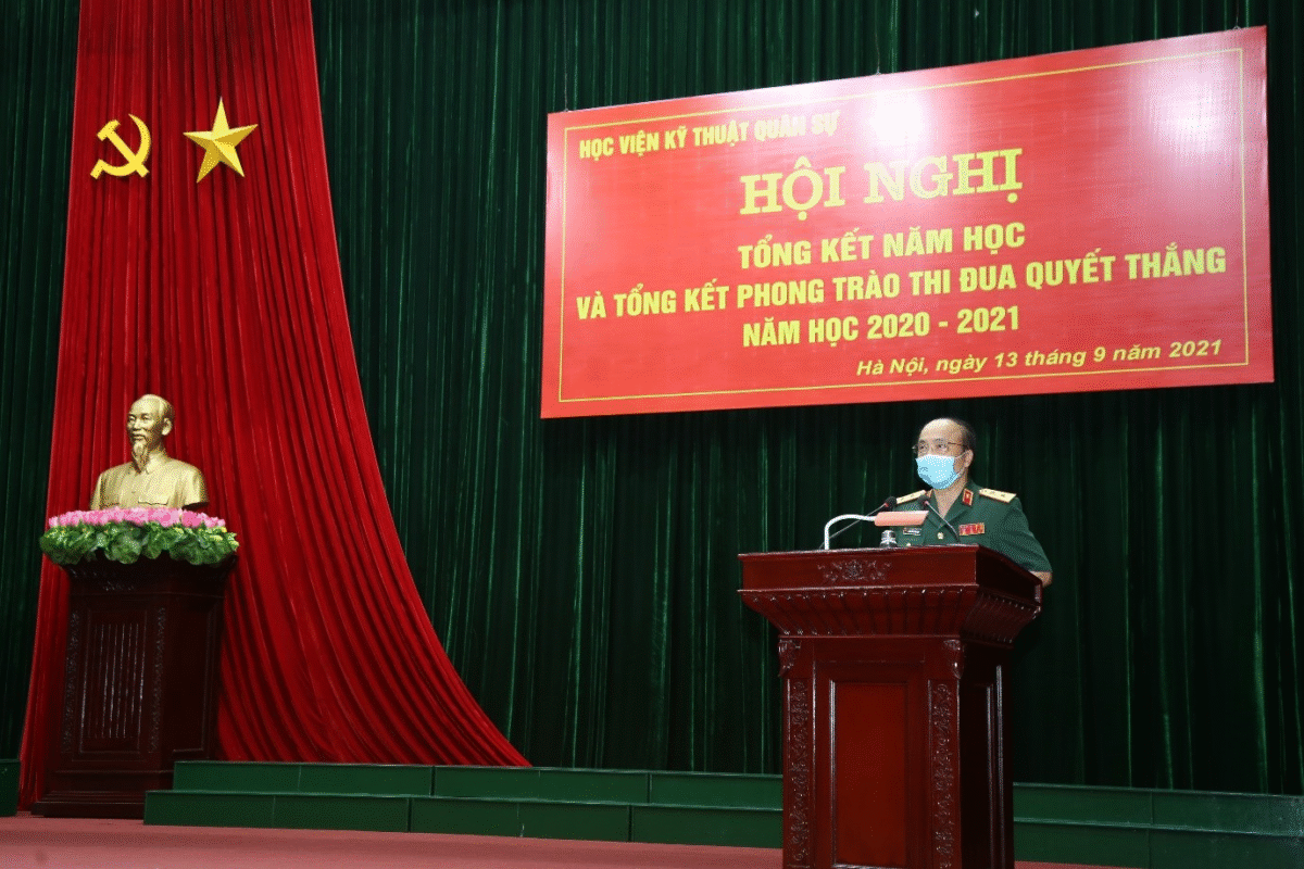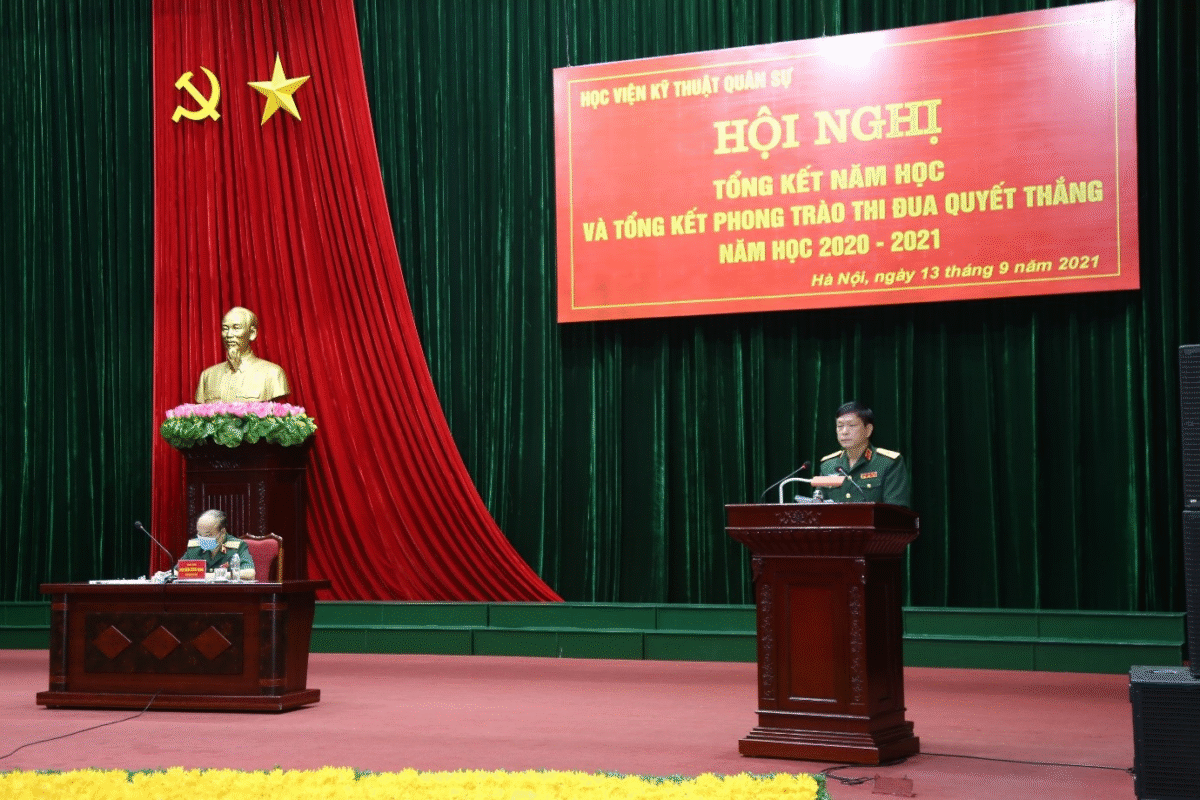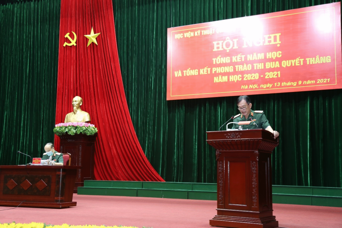 Ngày 13/9/2021, Học viện KTQS đã tổ chức Hội nghị Tổng kết năm học và Phong trào thi đua quyết thắng năm học 2020 – 2021 trong bối cảnh tăng cường các biện pháp phòng chống dịch Covid-19. Tham gia Hội nghị có các đồng chí trong Đảng ủy, Ban Giám đốc Học viện; các đồng chí Chỉ huy trưởng, Bí thư các cơ quan, khoa, viện, trung tâm; Phó Chủ nhiệm UBKT Đảng ủy Học viện; Chánh Thanh tra Học viện; Chỉ huy trưởng, Chính trị viên các hệ, tiểu đoàn; các đồng chí Trưởng ban, bộ phận thuộc các cơ quan chức năng của Học viện. Trung tướng, GS. TSKH Nguyễn Công Định – Giám đốc Học viện chủ trì Hội nghị.