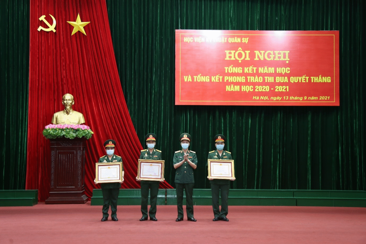 Cũng tại Hội nghị, đồng chí Giám đốc và Chính ủy Học viện đã trao tặng Huân chương Bảo vệ Tổ quốc của Chủ tịch nước cho Khoa Vô tuyến điện tử, Khoa Động lực, Phòng Đào tạo; trao tặng Danh hiệu Nhà giáo Ưu tú cho Đại tá, PGS. TS Nguyễn Thái Dũng; Đại tá, PGS. TS Nguyễn Trí Tá và Đại tá, PGS. TS Phan Đức Nhân; đồng thời trao quyết định công nhận chức danh Giảng viên cao cấp của Bộ trưởng Bộ Quốc phòng cho đại diện 74 đồng chí; Bằng khen của Bộ trưởng Bộ Quốc phòng cho các tập thể, cá nhân có thành tích xuất sắc trong thực hiện nhiệm vụ Công nghiệp quốc phòng giai đoạn 2008 – 2020; Bằng khen của Bộ trưởng Bộ Quốc phòng trong chỉ đạo, tổ chức, phục vụ, bảo đảm, tham gia bầu cử ĐBQH khóa XV và bầu cử HĐND các cấp nhiệm kỳ 2016 – 2021; Bằng khen của Tổng cục Công nghiệp Quốc phòng cho các tập thể có thành tích xuất sắc trong chỉ đạo, tổ chức thực hiện nhiệm vụ Công nghiệp Quốc phòng giai đoạn 2008 – 2020; Tặng Cờ thi đua, danh hiệu Đơn vị quyết thắng cho đại diện các tập thể có thành tích tiêu biểu trong phong trào thi đua quyết thắng năm học 2020 – 2021.
