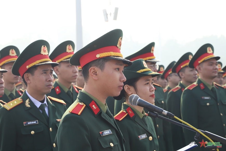 Trong không khí trang nghiêm của buổi Lễ, Đoàn đại biểu cán bộ, học viên Học viện KTQS bày tỏ lòng thành kính, biết ơn vô hạn đối với Chủ tịch Hồ Chí Minh kính yêu và xin hứa với Người: Dù trên cương vị công tác nào cũng sẽ tiếp tục nỗ lực phấn đấu, hoàn thành xuất sắc mọi nhiệm vụ mà Đảng, Nhà nước, Quân đội và nhân dân giao phó; tiếp tục phấn đấu, học tập, rèn luyện nâng cao trình độ, năng lực công tác, phẩm chất đạo đức của người quân nhân cách mạng, tích cực vận dụng sáng tạo kiến thức đã được trang bị vào nhiệm vụ khai thác, sử dụng, cải tiến vũ khí, trang bị kỹ thuật của đơn vị, góp phần xây dựng Quân đội cách mạng chính quy, tinh nhuệ, từng bước hiện đại, mãi xứng đáng với danh hiệu cao quý Bộ đội Cụ Hồ.