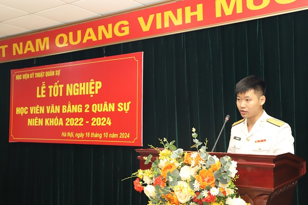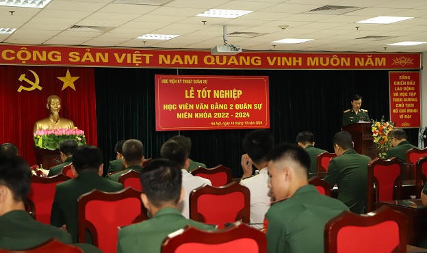Sáng 16/10/2024, Học viện KTQS đã tổ chức Lễ Tốt nghiệp cho học viên Văn bằng 2 Khóa 12. Thiếu tướng GS. TS Trần Xuân Nam – Phó Giám đốc Học viện đến dự và chỉ đạo buổi Lễ. Tham dự buổi Lễ còn có đại diện chỉ huy các cơ quan, khoa, viện; cán bộ, giảng viên cùng thân nhân học viên và 13 học viên tốt nghiệp.