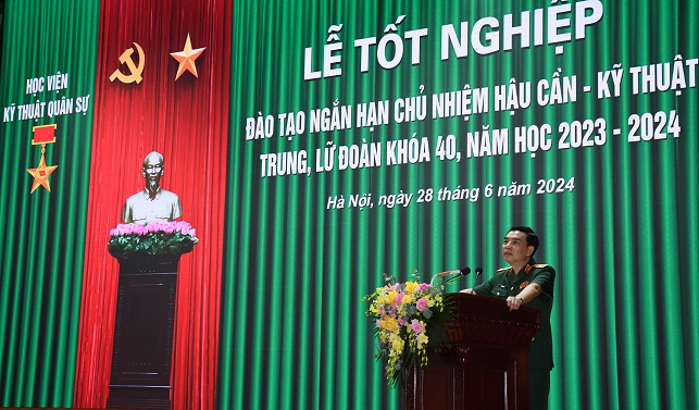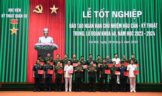 Sáng 28/6/2024, Học viện KTQS long trọng tổ chức Lễ Tốt nghiệp đào tạo ngắn hạn Chủ nhiệm Hậu cần – Kỹ thuật trung, lữ đoàn Khóa 40 năm 2024. Dự và chỉ đạo buổi Lễ có Trung tướng GS.TS Lê Minh Thái – Giám đốc Học viện, Thiếu tướng Trần Văn Thưởng – Chính ủy Học viện và các Thủ trưởng trong Ban Giám đốc Học viện. Tới dự buổi Lễ còn có đại diện chỉ huy các cơ quan, đơn vị, khoa, viện, các bộ môn thuộc Khoa Chỉ huy Tham mưu kỹ thuật cùng 219 học viên của khóa học.