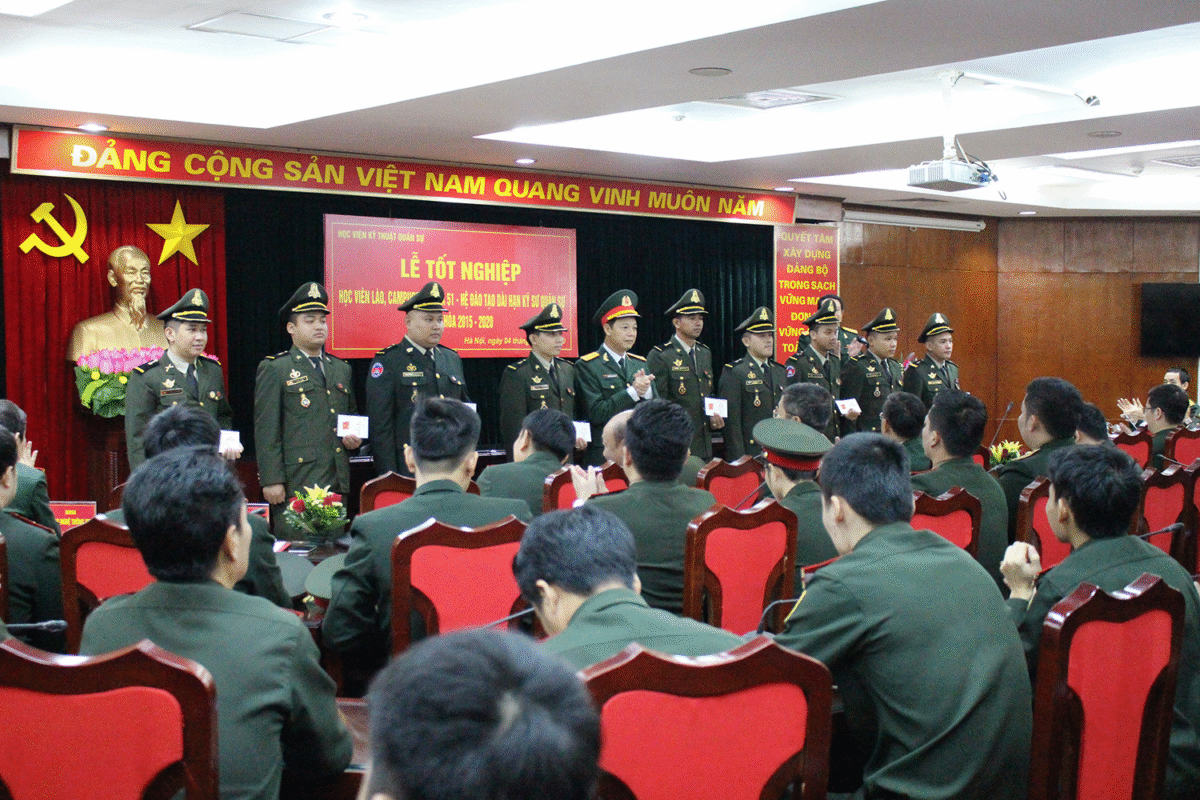 Sáng 04/10/2020, tại Phòng Hội thảo S4, Học viện KTQS đã tổ chức Lễ tốt nghiệp cho 26 học viên quân sự Lào, Campuchia Khóa 51 – Hệ đào tạo dài hạn Kỹ sư quân sự.