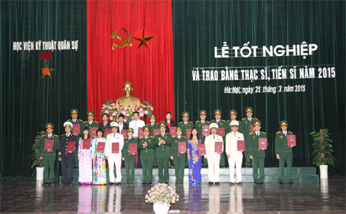 Trong năm 2015, các học viên được trao bằng Thạc sĩ thuộc các chuyên ngành: Chỉ huy, quản lý kỹ thuật; Kỹ thuật cơ khí động lực; Cơ kỹ thuật; Kỹ thuật xây dựng công trình đặc biệt; Kỹ thuật xây dựng công trình giao thông; Kỹ thuật xây dựng công trình ngầm; Hệ thống thông tin; Khoa học máy tính; Kỹ thuật cơ khí; Kỹ thuật điều khiển và tự động hóa; Kỹ thuật điện tử; Kỹ thuật hoá học; Kỹ thuật rađa – dẫn đường; Quản lý khoa học và công nghệ. Các nghiên cứu sinh được trao bằng Tiến sĩ thuộc các chuyên ngành: Kỹ thuật xây dựng công trình giao thông; Kỹ thuật xây dựng công trình đặc biệt; Kỹ thuật điện tử; Chỉ huy, quản lý kỹ thuật; Kỹ thuật điều khiển và Tự động hóa; Cơ kỹ thuật; Toán ứng dụng; Kỹ thuật cơ khí động lực; Cơ sở toán học cho tin học.