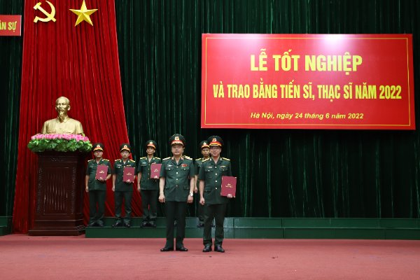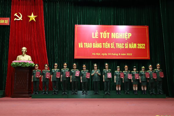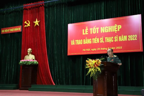 Sáng 24/6/2022, Học viện KTQS đã long trọng tổ chức Lễ tốt nghiệp và trao bằng tiến sĩ, thạc sĩ năm 2022. Tới dự buổi Lễ, về phía khách mời có Thiếu tướng Vũ Cộng Hòa – Phó Cục trưởng Cục Cán bộ/TCCT, Thiếu tướng Nguyễn Đăng Bảo – Phó Cục trưởng Cục Nhà trường/BTTM. Về phía Học viện KTQS có Trung tướng GS. TSKH NGND Nguyễn Công Định – Giám đốc Học viện cùng các đồng chí trong Ban Giám đốc Học viện; các giáo sư, nhà giáo nhân dân, nhà giáo ưu tú, đại diện các cơ quan, đơn vị trong toàn Học viện; học viên cao học quân sự Khóa 33 và các tân tiến sĩ, tân thạc sĩ được nhận bằng tốt nghiệp ngày hôm nay.