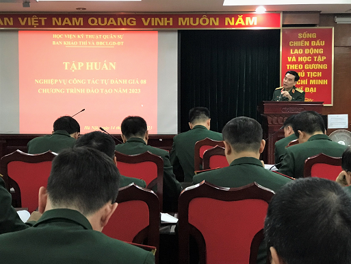 Sáng 14/02/2023, tại phòng hội thảo nhà S4, Học viện KTQS đã tổ chức tập huấn nghiệp vụ công tác tự đánh giá chất lượng 08 chương trình đào tạo (CTĐT) năm 2023. Thiếu tướng Lê Minh Thái – Phó Giám đốc Học viện chủ trì buổi tập huấn. Tham gia tập huấn có các đồng chí là thành viên của 08 Hội đồng tự đánh giá chất lượng CTĐT năm 2023 và các đồng chí trong Ban tư vấn của Hội đồng.