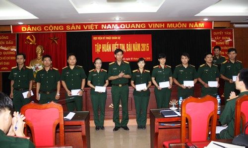 Cũng tại buổi tập huấn, Học viện đã biểu dương, khen thưởng cho 10 đồng chí cộng tác viên tiêu biểu trong hoạt động viết tin, bài và tin, bài có chất lượng tốt là: (1) Bùi Đức Quý (d1); (2) Tạ Ngọc Ánh (K12); (3) Nguyễn Thị Hoài Thu (K13); (4) Nghiêm Xuân Hùng (P1); (5) Đặng Thị Nguyệt Ánh (P8); (6) Nguyễn Hải Hà (P1); (7) Bùi Phi Hùng (d4); (8) Lê Ngọc Sơn (V3); (9) Cao Thị Thuận (P5); (10) Mai Đình Sinh (V2).