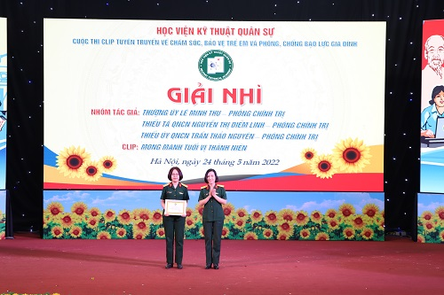 Cùng ngày, Ban Giám khảo Cuộc thi Clip tuyên truyền về Chăm sóc, bảo vệ trẻ em và Phòng, chống bạo lực gia đình năm 2022 cũng đã tổng kết và trao giải cho các tập thể, nhóm tác giả tham dự Cuộc thi. Đã có 13 clip dự thi với 40 tác giả, nhóm tác giả, tập thể đến từ 17 tổ chức công đoàn, phụ nữ, đoàn thanh niên đăng ký tham gia. Các clip dự thi có nội dung phong phú, đa dạng từ thể loại là các bài tuyên truyền về hình ảnh, slide ảnh đến các phóng sự, tiểu phẩm tuyên truyền… đều mang tính thời sự, bám sát nội dung, yêu cầu và cốt truyện rõ ràng, phù hợp với thông điệp và chủ đề Cuộc thi. Ban Giám khảo đã trao 01 giải Nhất, 01 giải Nhì, 03 giải Ba, 04 giải Khuyến khích và tặng 04 Giấy chứng nhận cho các clip dự thi.