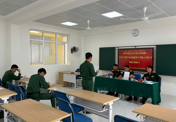 Thực hiện Kế hoạch số 6422/KH-HĐ ngày 14/10/2025 của Hội đồng thi tốt nghiệp Học viện KTQS, từ ngày 17 đến 25/11/2025, Khoa Công tác Đảng, Công tác Chính trị (CTĐ, CTCT) phối hợp với Ban Khảo thí và Đảm bảo chất lượng giáo dục – đào tạo tổ chức thi tốt nghiệp môn CTĐ, CTCT cho 520 học viên kỹ sư quân sự Khóa 56.