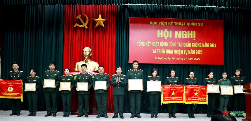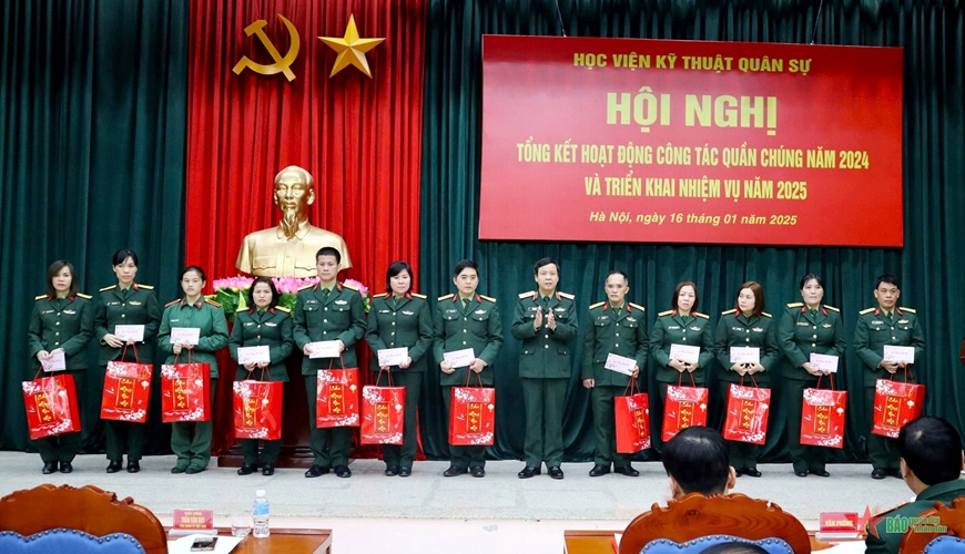 Tại hội nghị, Thiếu tướng Trần Văn Duy trao cờ thi đua, bằng khen của Tổng cục Chính trị Quân đội nhân dân Việt Nam, Tổng Liên đoàn Lao động Việt Nam, Hội Liên hiệp Phụ nữ Việt Nam tặng các tập thể, cá nhân có thành tích xuất sắc trong hoạt động công tác quần chúng năm 2024; trao tặng 39 suất quà động viên các cán bộ, hội viên, đoàn viên trong Học viện có hoàn cảnh khó khăn nhân dịp Tết Nguyên đán Ất Tỵ năm 2025.