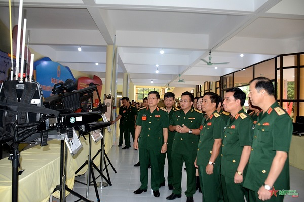 Các đại biểu tham quan sản phẩm, đề tài nghiên cứu của Học viện KTQS
