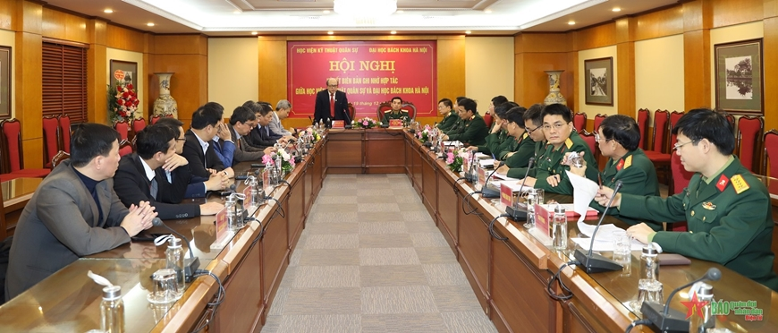 Chiều 19/12, tại Hà Nội, Học viện KTQS tổ chức Hội nghị Ký kết biên bản ghi nhớ hợp tác với Đại học Bách khoa Hà Nội. Trung tướng GS. TS Lê Minh Thái – Giám đốc Học viện KTQS và PGS. TS Huỳnh Quyết Thắng – Giám đốc Đại học Bách khoa Hà Nội đồng chủ trì Hội nghị.