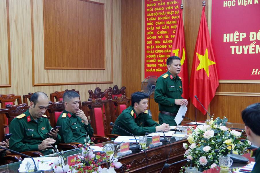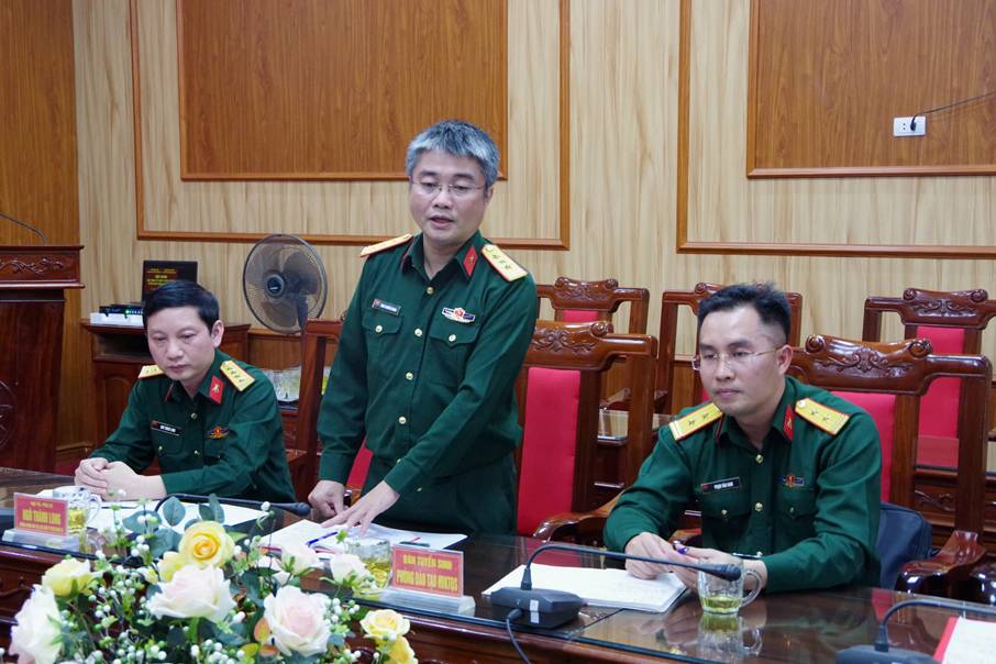 Tại buổi làm việc đống chí Đại tá PGS.TS Ngô Thành Long – Trưởng phòng đào tạo đã trao đổi, thông tin công tác tuyển sinh của Học viện Kỹ thuật quân sự, một số điểm mới, tổ hợp xét tuyển, chỉ tiêu tuyển sinh, thông tin ngành đào tạo,… Bên cạnh đó Học viện Kỹ thuật quân sự có tơ rơi, bảng thông tin tuyển sinh năm 2025 gửi các tỉnh tuyên truyền đến tất cả các trường THPT trên địa bàn.