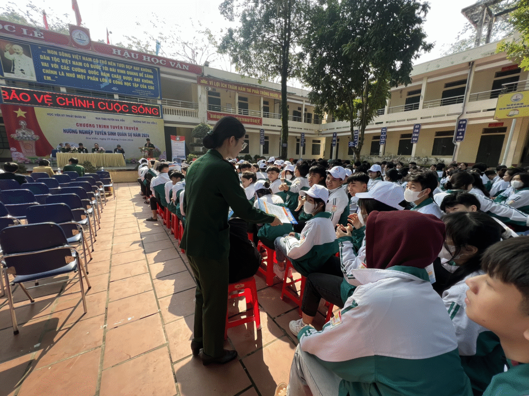 Bên cạnh đó, học sinh tại các trường THPT trên địa bàn tỉnh cũng được tiếp nhận các thông tin từ ban tổ chức về truyền thống Quân đội nhân dân Việt Nam, truyền thống các quân, binh chủng, các học viện và trường sĩ quan; được giải đáp băn khoăn về quá trình tham gia học tập tại các học viện, trường trong quân đội…