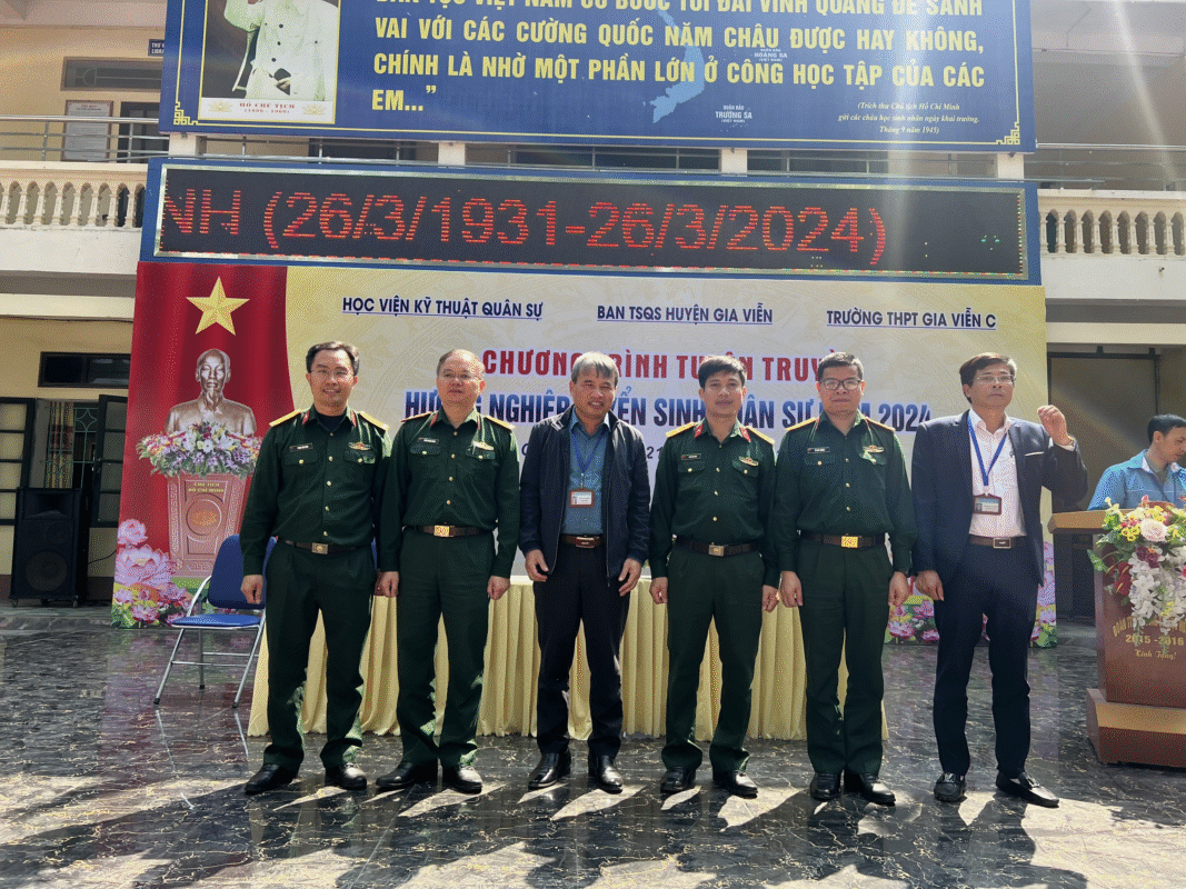 Ngày 20, 21, 22 – 3 vừa qua Học viện Kỹ thuật quân sự đã phối hợp với Bộ CHQS tỉnh Ninh Bình tổ chức tư vấn tuyển sinh tại Trường THPT Chuyên Lương Văn Tụy, THPT Yên Khánh A, THPT Gia Viễn C, THPT Nho Quan B, THPT Nguyễn Huệ trên địa bàn tỉnh Ninh Bình.