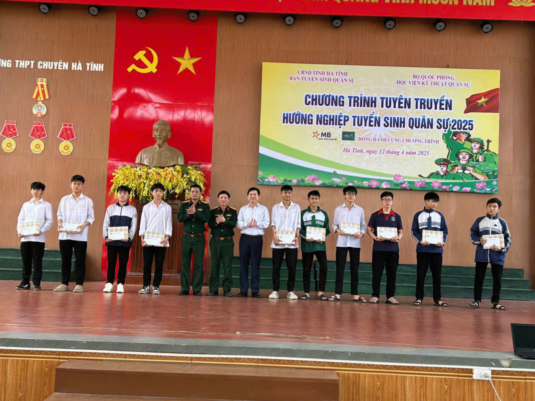 Nhằm động viên, khuyến khích các em học sinh có hoàn cảnh khó khăn và có thành tích tốt trong học tập, cùng với sự đồng hành, chia sẻ từ phía ngân hàng MB và BIDV, Học viện KTQS đã trao các phần quà và hỗ trợ các em học sinh và mong muốn các em tiếp tục cố gắng để đạt được kết quả tốt tại kỳ thi tốt nghiệp THPT và kỳ tuyển sinh đại học năm 2025.