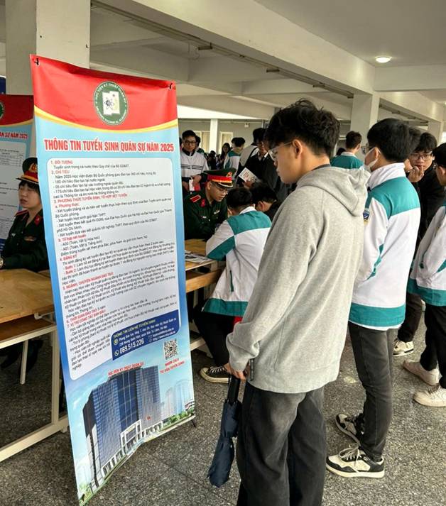 Ngoài các nội dung tuyên truyền về công tác tuyển sinh quân, bộ phân tuyển sinh đã giới thiệu rất cụ thể chi tiết về truyền thống, lịch sử hình thành phát triển của Học viện, quy mô đào tạo của nhà trường, các ngành đào tạo từ đó giúp các em học sinh lựa chọn và xác định hướng đi cho mình vào các trường quân sự.