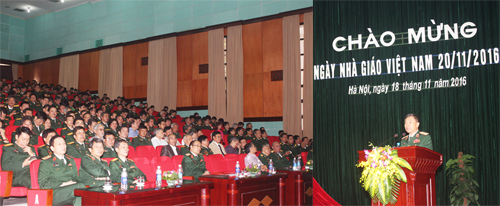 Trong buổi mít tinh long trọng này, Đại tá Nguyễn Minh Thắng – Chủ nhiệm Chính trị đã đọc thư chúc mừng Ngày Nhà giáo Việt Nam của Đại tướng Ngô Xuân Lịch – Ủy viên Bộ Chính trị, Phó Bí thư Quân ủy Trung ương, Bộ trưởng Bộ Quốc phòng.