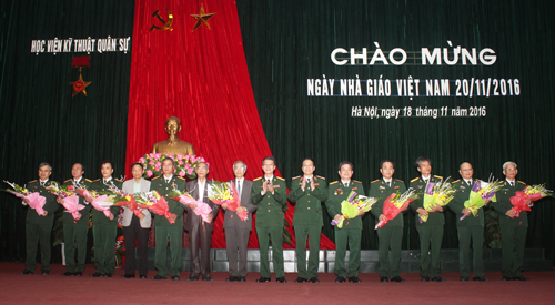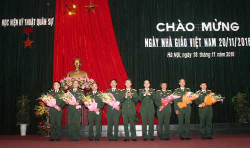 Thay mặt Đảng uỷ, Ban Giám đốc Học viện, đồng chí Chính ủy Học viện nhiệt liệt chúc mừng các thầy, cô giáo trong toàn Học viện, đồng chí đã ghi nhận và đánh giá cao những đóng góp của các thầy cô giáo trong năm học vừa qua, đồng thời nêu rõ những việc đã làm được và chỉ ra những mặt còn tồn tại cần khắc phục trong những năm học tiếp theo. Đồng chí nhấn mạnh: “Hiện nay, chúng ta được sống và làm việc trong điều kiện hết sức thuận lợi, song cũng đặt ra nhiều thách thức cho các Nhà giáo thuộc Học viện KTQS nói riêng và nhà giáo Việt Nam nói chung, đó là: Vấn đề đổi mới căn bản nền giáo dục Đại học, vấn đề nâng cao chất lượng đào tạo nguồn nhân lực trong quá trình hội nhập kinh tế quốc tế… Hơn ai hết, nhà giáo phải luôn ý thức được trách nhiệm của mình trong việc khắc phục khó khăn, bồi dưỡng tri thức, làm chủ công nghệ. Bằng sức lực, trí tuệ và lòng nhiệt huyết với nghề, đòi hỏi người thầy vừa phải có bản lĩnh, vừa phải giữ được phẩm chất tốt đẹp của một nghề cao quý, đáp ứng ngày càng cao tri thức, kiến thức chuyên môn, nghiệp vụ sư phạm, tạo nên sự chuyển biến mạnh mẽ trong sự nghiệp phát triển nền giáo dục Việt Nam.