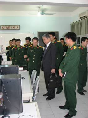 Trung tướng Noboru cũng đã thăm và làm việc với cán bộ Viện Công nghệ Mô phỏng, nghe giới thiệu về Viện và một số sản phẩm tiêu biểu tại PTN Mô phỏng, xem trình diễn tại Trường bắn ảo của Viện; Tham quan PTN Kỹ thuật vi xử lý, PTN Anten truyền sóng/Khoa Vô tuyến điện tử với các trang thiết bị phục vụ đào tạo; Nghe Phòng Đào tạo giới thiệu sơ bộ về cơ cấu, chức năng, nhiệm vụ của Học viện, cũng như quy mô, mục tiêu và quy trình đào tạo hệ kỹ sư quân sự.
