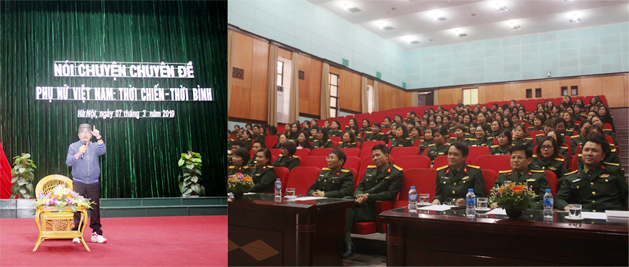 Chiều 07/3/2019, Học viện KTQS đã tổ chức buổi Nói chuyện chuyên đề về “Phụ nữ Việt Nam: Thời chiến – Thời bình” do Đại tá nhà văn Chu Lai làm diễn giả. Tham dự buổi Nói chuyện có đại diện Thủ trưởng các cơ quan, đơn vị, cùng đông đảo nữ cán bộ, giảng viên, nhân viên, công nhân quốc phòng, lao động hợp đồng, học viên trong toàn Học viện.