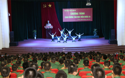 Mở đầu Chương trình, các tân học viên được xem đoạn phim giới thiệu về truyền thống Học viện 52 năm xây dựng và trưởng thành. Những mốc son đáng tự hào, những tấm gương tiêu biểu của các lớp cha anh đi trước đã truyền cảm hứng, khơi gợi, khích lệ tinh thần đam mê học tập, rèn luyện, giúp các em học viên Khóa 54 vững bước để viết tiếp những trang sử hào hùng của Học viện.