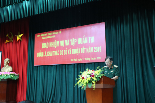 Thực hiện kế hoạch công tác kỹ thuật năm 2019 và Kế hoạch Số 953/KH-KT ngày 01/4/2019 của Thủ trưởng Học viện, ngày 17/4, Học viện đã tổ chức buổi giao nhiệm vụ và khai mạc Cuộc thi Quản lý, khai thác cơ sở kỹ thuật tốt năm 2019. Thiếu tướng Nguyễn Lạc Hồng – Phó Giám đốc Học viện, Trưởng ban Chỉ đạo CVĐ50 Học viện làm chủ trì và phát biểu khai mạc cuộc thi.