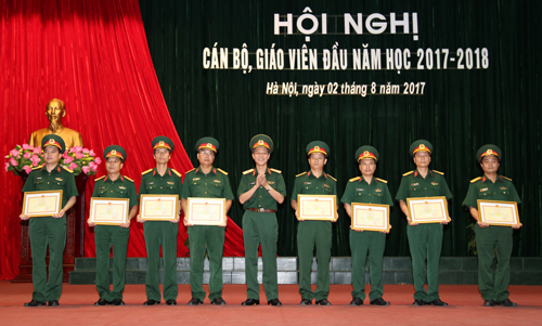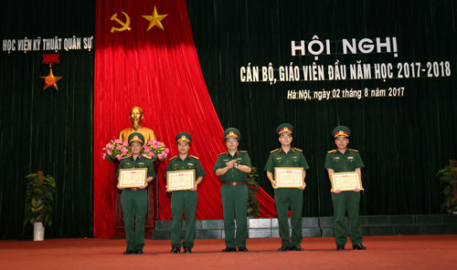 Cũng tại Hội nghị, Thủ trưởng Học viện đã biểu dương và trao tặng Danh hiệu Chiến sĩ thi đua toàn quân năm 2017 cho 04 đồng chí đã hoàn thành xuất sắc nhiệm vụ, tiêu biểu trong phong trào thi đua Quyết thắng giai đoạn 2014 – 2016; Bằng khen của Bộ trưởng Bộ Quốc phòng cho 02 tập thể và 06 cá nhân đã có thành tích xuất sắc trong công tác từ năm 2015 đến năm 2016, góp phần vào sự nghiệp xây dựng Quân đội, củng cố quốc phòng và bảo vệ Tổ quốc; Bằng khen của Giám đốc Học viện cho 07 giáo viên có thành tích trong hướng dẫn học viên, sinh viên thi Olympic năm 2017.