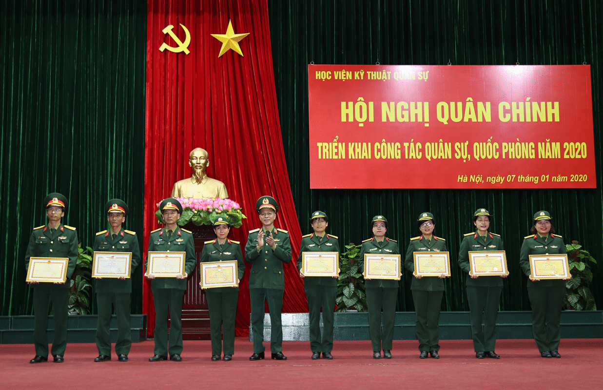 Kết thúc Hội nghị, Học viện đã tổ chức công bố quyết định, trao chứng nhận và tặng hoa cho các nhà giáo đạt tiêu chuẩn chức danh Giáo sư, Phó Giáo sư, Nhà giáo giỏi cấp Bộ Quốc phòng năm 2019; phát động Phong trào thi đua Quyết thắng năm 2020. Đồng chí Giám đốc Học viện đã kết luận và giao nhiệm vụ cho các cơ quan, đơn vị liên quan nghiên cứu, cụ thể hóa các nội dung đã được triển khai tại Hội nghị bằng các kế hoạch cụ thể; chủ động thường xuyên phối hợp, hướng dẫn và tạo điều kiện tốt nhất để các cơ quan, đơn vị triển khai thực hiện thắng lợi các nhiệm vụ trong năm 2020.